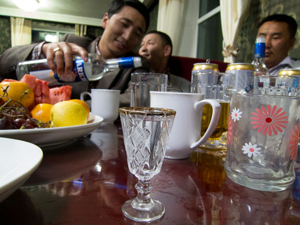 Homahc* for a bottle of wine to celebrate our first week of teaching, I took my shoes off and started to unload images from the cards I had shot that afternoon, and I waited for Judy. And waited. And waited some more. At about the time I was ready to hike back to school to see if I could find her, there was a knock at the door and Puje explained that there was a celebration in progress, that they had neglected to mention it to me, and that I was expected to be there. Judy was there already (had been for an hour and a half) so could I please hurry, and find a thousand tugriks for the taxi. I asked if I needed to change my clothes. "Wear something warm," he said. It's getting cold.