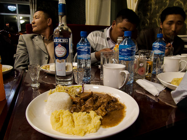 Sarah Brooke, I learned when we had moved inside out of the rain, is a British PhD student in bio-anthropology, studying the relationship between herders in the country and snow leopards. In short order, I got the names of several Peace Corps volunteers, a couple of English language consultants, and a few handy Mongolian words. (Sarah's Mongolian is very impressive to me, but you should not take my word for it. Native speakers understand her.) I learned the best options for connecting to the internet, which has allowed me to post these notebooks. And we also learned (by now Judy had located me) about Mongo-lish night, at the restaurant where we were now having tea, on Wednesday nights. Mongo-lish is an opportunity for Mongolians who want to improve their English to meet native English speakers willing to share their "expertise" as well as learn a lot about Mongolians and their culture. We were to consider ourselves invited!