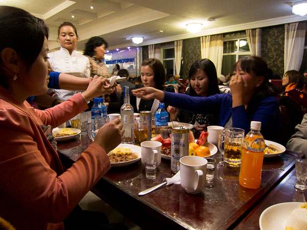 On Friday I finished classes by noon, then set off to see the Buyant River—see Nomadic below— and arrived back home at four, when Judy's classes are finished. After stopping at Homahc* for a bottle of wine to celebrate our first week of teaching, I took my shoes off and started to unload images from the cards I had shot that afternoon, and I waited for Judy. And waited. And waited some more. At about the time I was ready to hike back to school to see if I could find her, there was a knock at the door and Puje explained that there was a celebration in progress, that they had neglected to mention it to me, and that I was expected to be there. Judy was there already (had been for an hour and a half) so could I please hurry, and find a thousand tugriks for the taxi. I asked if I needed to change my clothes. "Wear something warm," he said. It's getting cold.