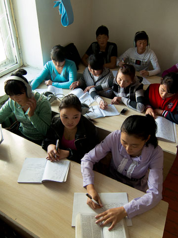 Teaching Mongolians, it turns out, is not all that different than teaching Americans, for even when speaking with commonly understood words, it is a struggle to get some concepts across. I do more acting here, and have done more drawing with chalk than I have ever done. (Students, embarrassed for me, bring me damp towels to wipe off the clouds of dust that have become part of my wardrobe.) And despite their surroundings, the students here are well practiced in the universal language of teacher annoyance—texting in class.