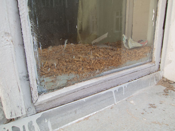 Warming your windows involves cleaning both the inside and outside sashes, scraping out the old sealant, sealing them up again, and adding a layer of sawdust in the space between the bottom of the two sashes. The sealant looks like plaster but does not set as quickly and it is softer and less permanent.