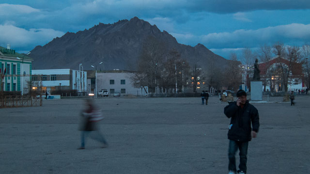 For the past ten years I have commuted between two and five hundred miles a week to my job in Alfred, NY. So ironically, it has been a relief to find myself in Mongolia with less than a ten minute walk to work—close enough to go home for lunch or even just between classes. Most days I make the trip at least twice, and over the past couple of weeks I have made it a habit to stop at the base of a statue at the west end of the Center to take the same view of Khovd's large public square. (At first I thought my students were forgetting something when they wrote that they lived near the Center... “Of what?” I wondered.)
