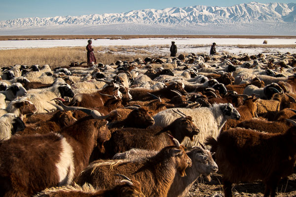 Farther down the road, my students saw a ger that looked inhabited, so our driver simply left the road and headed across snow and the sparse vegetation to give us a look at the process of herding goats and evaluating them for the market. While my students automatically pitched in to help with the herding, I photographed. And photographed. And eventually, was lead to understand that my students did not bring me here just for my pleasure, but that they wanted to talk. And through this negotiation, which started at the goat herd and found resolution as we struggled to understand each other in a van that barreled across the desert, we stopped the van and agreed to meet the driver down the road a way as we walked along the frozen lake shore. For several reasons, it was a good decision.