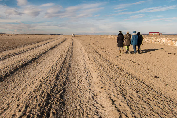 Farther down the road, my students saw a ger that looked inhabited, so our driver simply left the road and headed across snow and the sparse vegetation to give us a look at the process of herding goats and evaluating them for the market. While my students automatically pitched in to help with the herding, I photographed. And photographed. And eventually, was lead to understand that my students did not bring me here just for my pleasure, but that they wanted to talk. And through this negotiation, which started at the goat herd and found resolution as we struggled to understand each other in a van that barreled across the desert, we stopped the van and agreed to meet the driver down the road a way as we walked along the frozen lake shore. For several reasons, it was a good decision.