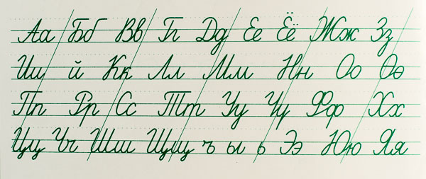 This is very different from the printed alphabet. Learning to write it has explained some of my students' mysterious spelling. Coming from English should give you pause at the difference between upper and lower case characters. See D, row 1 fifth from left, and T, row 3, fourth from left.