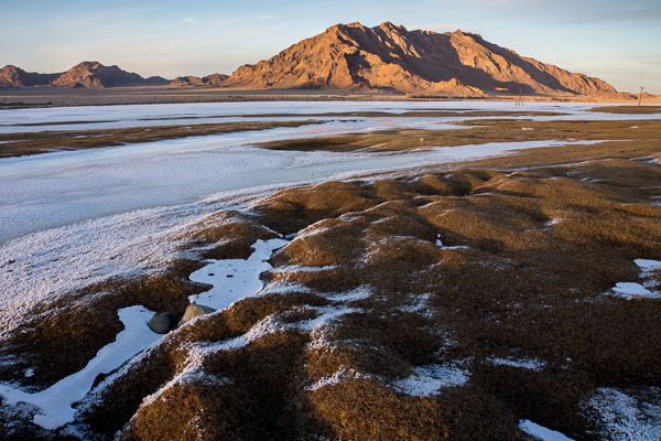 The Buyant River is spilling out of its banks now. The water is freezing into chunks that collect, dam up, and divert the flow over ground that is nearly flat. Although I am within walking distance of the same latitude as Emerson Orchard on Flathead Lake, the weather here comes from Siberia and not the Pacific Ocean, and we are at twice the altitude. During the long nights the temperature has been dropping to -10, -20, and a few nights ago, nearly -30°F. The feeble sun has been bringing the thermometer back above 0°F in the daytime, but not by more than a digit. The water that flows over this ground does not stay liquid for long. Low ground fills with ice, frozen from the surface all the way to the grass or gravel below. Shallow washes created by floods become main arteries as the primary flow is re-routed. They, in turn, ice over, solidify, and divert the water to the next lowest ground. One month ago I could run along the main bank of the river, but now I cannot even find it. On my way out of town to the west, the branch of the river spanned by the bridge is completely dry, reappearing mysteriously a half mile further downstream.