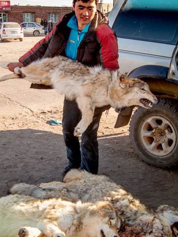 So far, I haven't heard anyone talk about the fact that if you kill enough wolves you will no longer even see them, much less be able to carry them on the hood of your car. In our country's expansion, we have done this with several species, large and small. Mongolia is a large country with roughly one percent of the population of the United States. It has so far avoided our country's bad luck of only being able to learn this lesson in hindsight, by shooting a species to the edge of extinction—or beyond. (Just this side for our bison, the other side for several species of majestic birds.) Especially in the northwest United States, we are still arguing over the role that our wolves will play. In Mongolia, the next precarious species is the snow leopard. I hope they have better luck than our wolves have had.
