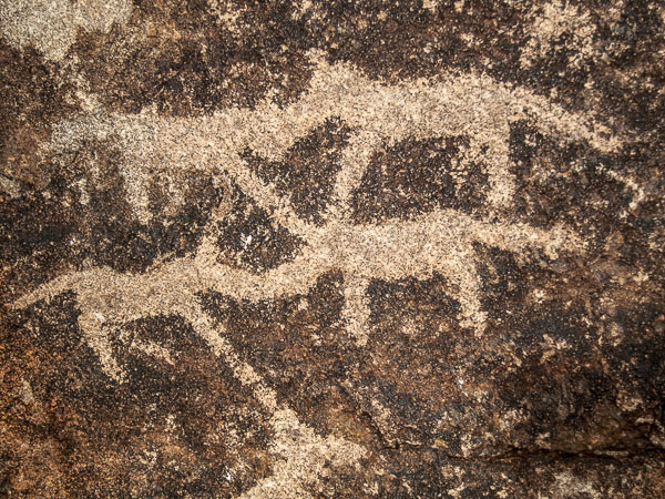 To confuse the issue of dating these drawings, it seems that some older drawings have been enhanced by modern helpers. Natural processes of erosion and the cracking of rock are also taking a toll. Well out onto the flat plain that meets the steep sides of the mountain, pieces of rock can be found with drawings or parts of drawings on them. More disturbing are areas where it looks as though pieces of the rock have been removed by unnatural means, either taken for their drawings or quarried for use as building material.