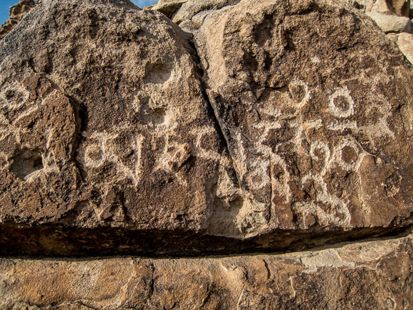 To confuse the issue of dating these drawings, it seems that some older drawings have been enhanced by modern helpers. Natural processes of erosion and the cracking of rock are also taking a toll. Well out onto the flat plain that meets the steep sides of the mountain, pieces of rock can be found with drawings or parts of drawings on them. More disturbing are areas where it looks as though pieces of the rock have been removed by unnatural means, either taken for their drawings or quarried for use as building material.