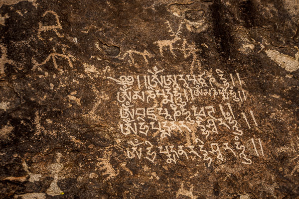 Most are very old, but not all. Aside from the presence of three herders' gers, nothing is there to discourage modern people from adding to the collection, and although, quite literally, an entire mountain is available, some have felt the need to place their mark on top of the marks of those who were there before them. Among the newer additions are poor imitations of the ancient drawings—whose outlined style gives them away immediately, as well as text in Turkic, Tibetan, old Mongolian, and modern Cyrilic script. In the same thoughtless way that Bubb Smith immortalized his name among the drawings at the Great Gallery in Canyonlands National Park, Жаке has made a record of his visit to this historic site.