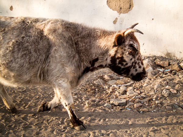 The first piece of "common knowledge" to go was the notion that cows will wander forever if someone doesn't go out and bring them back, expressed in our idiom till the cows come home. Here, the cows come home when it starts to get dark, winding their way from wherever they had found food back to their own khasha, or yard. They do this every day, without the help of herders or cowboys or dogs, the instructions clear in their heads as they move through traffic in the streets or gatherings of people in the square. Although they are big and slow, they are smart in a way I never imagined, though, since there are no street signs here, I won't yet make the claim that they can read.