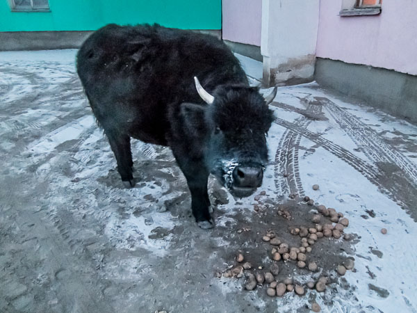 The first piece of "common knowledge" to go was the notion that cows will wander forever if someone doesn't go out and bring them back, expressed in our idiom till the cows come home. Here, the cows come home when it starts to get dark, winding their way from wherever they had found food back to their own khasha, or yard. They do this every day, without the help of herders or cowboys or dogs, the instructions clear in their heads as they move through traffic in the streets or gatherings of people in the square. Although they are big and slow, they are smart in a way I never imagined, though, since there are no street signs here, I won't yet make the claim that they can read.