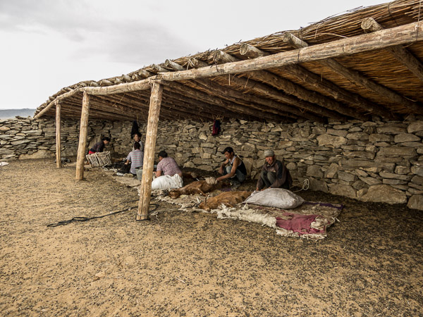 Outside this rock wall I kept hearing goats. When I stuck my head over I found this group of people combing the winter hair from them.