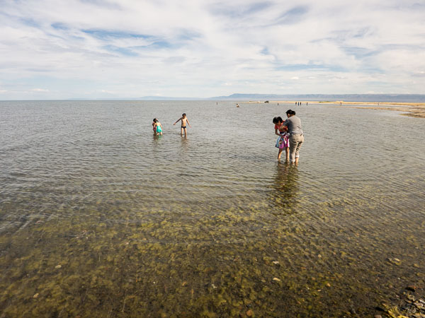 It took a while, but after arriving at this far-north salt lake (It has no outlet. I read somewhere that the lake is five times as salty as the ocean, but that is not what I found there. It didn't burn my eyes or nose and it only tasted mildly salty.) and discovering that it was comfortable enough to swim in, I joined the kids and swam for a while before getting down to business. Suree would cook on wood. I got charcoal, which he had never cooked on. His marinade was Russian, with mayonnaise and onions. He used a sprayer to control the flames. His meat was done first, and it was delicious. In the end, we didn't vote. He explained that in addition to the fact that he had never used charcoal, he had never barbecued before.
