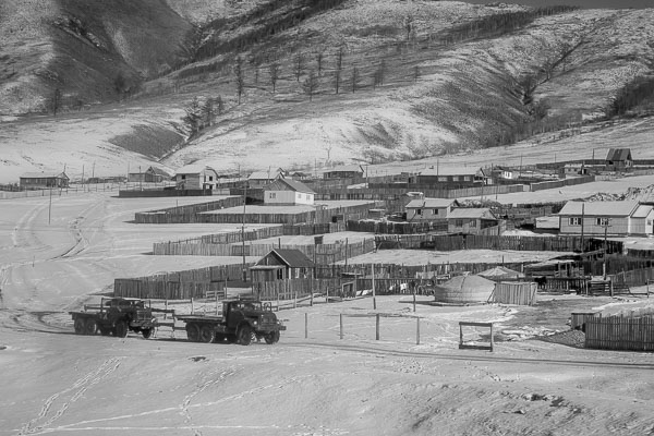 After spending a month in Ulaanbaatar we traveled to Darkhan this weekend, for Judy to present a workshop at a branch of her university there. We went by train, which for a photographer is both blessing and curse. It was a relief to get out of town and see the landscape to the north of the city, but lashed to the tracks as you are when traveling by rail you can only dream about a chance to come back with more time to spend. The last time we came to Darkhan the temperature was warm enough to travel with the windows open, so that it was possible to make quick snapshots without obstruction. A dozen degrees below freezing in a full car, that was not even a remote option, so what I saw I viewed through filthy glass, three layers thick.