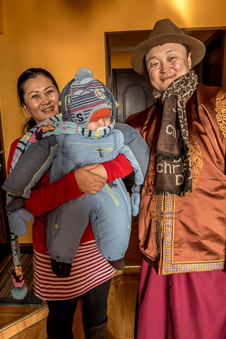Together we visited two families of Judy's colleagues at M.U.S.T., both in apartments that were built in the past twenty-five years. One was the home of Tsend Ayuush, another teacher in Judy's department, whose father is a semi-retired physics professor. The other belongs to Judy's supervisor Dugarmaa's brother, a doctor who works at one of the big mines in the Gobi. At both houses we were treated royally, staying longer than we normally would because both families wanted us to get a good look at the whole ceremony. As guests arrived, the oldest family member (Tsend Ayuush's father, Dugarmaa's mother) would greet them with a special greeting, as well as a version of a hug that requires the younger person to place their forearms under the forearms of the older, in that way signifying their support for them. This part of the ritual is known by even the youngest of guests.