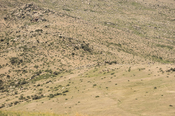 For reasons we didn't immediately appreciate, the herd started to move in our direction, bringing them out of the rocks and onto the smoother terrain. Still very hard to see.