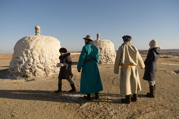 Ulanjim Chanar, (which was written by Danzanravjaa in a nearby cave,) from making offerings of milk or of vodka to the two adjacent dome shaped piles of rock covered with a white glaze of frozen milk if you are a woman, or by bringing your offerings to the peak of a nearby mountain if you are a man.
