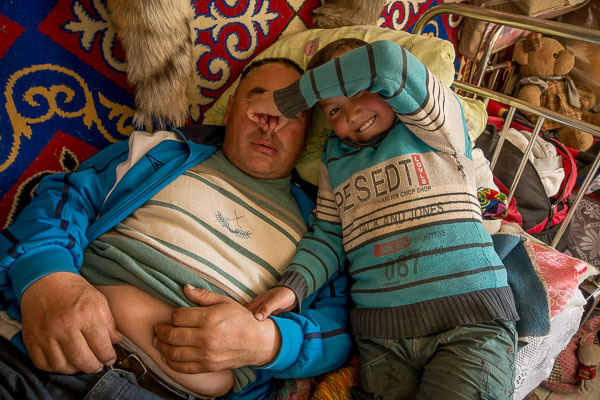 When tourists come so far to get to this part of Mongolia, there's an understandable desire to bring home pictures of a culture that is unique, or perhaps one that is still somehow untouched by time, but that is not the real story either. In the afternoon Argalai watches a horse race on his solar powered television, makes an appointment to have a tooth pulled with his mobile phone. He has skills that have taken generations to perfect but will take only one or two to lose in a world where the need for animal skins is replaced by the need for money. Tourism is the bargain he makes to keep one foot in each world, and it is not an easy bargain. The next afternoon as we are leaving for the Ulgii, an hour away, Agalai asked for a ride to go see his dentist. Although the film his daughter is featured in, and in which he participated behind the scenes, made its filmmaker nearly two million dollars, he does not own a vehicle to drive to town. He will spend the night with friends and take a taxi home the next day.