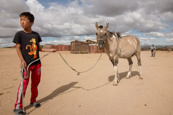 The difficulty begins with the fact that it is so hard to get to, that although red lines cross western Zavkhan on the official road map of Mongolia, when you cross western Zavkhan on the ground you do so on a road that ebbs and flows with the needs of the local nomadic population. In high-traffic areas you can choose between the least torturous washboarded tracks across the desert, experimenting with one before bailing out and trying another of the braided paths. In other places grass grows in the space between a single pair of sandy tire tracks—a few runs a year from supply trucks to a village delguur, or store; a mini-flatbed truck loaded with sheep, headed to market in the east.