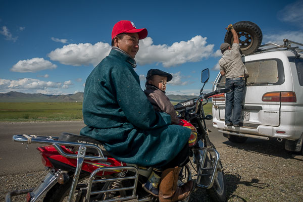 Travel is also difficult because the small black dots you see connecting the lines on the map don't mean what you think they mean. They may mean that you can buy drinking water, but not necessarily that you can get a tire fixed. In western Zavkhan, these dots don't mean that when you are near them you can connect to a mobile phone carrier, or that if you can get to one of these dots, that you could buy a part for the particular year and model of Japanese mini-van you are riding in. These are not facts that jump out at you when you are sitting at your table at home looking at the map, but they do occupy your imagination once you have helped your driver install your last spare tire, or in the middle of the road, as you grind to a halt with a bigger problem.