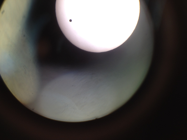 I had planned to be more prepared for this, but when the beautiful clear afternoon finally got here, I was still bogged down with phone calls and equipment that would not work, along with people who seem to be being paid to be useless at troubleshooting scanner problems. So I figured I had time for a run, then I would drive up to the lake to see what I could see with the pinhole setup I had put together. But on my run over Cobbs Hill, there were already many people set up for the event, and as I stopped to talk, they showed me the very first of the transit.