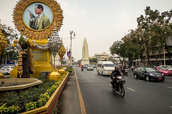 I was warned before I left home that the Thai people are very friendly and that they are very accommodating to foreigners, but that their patience is pressed if there is any sign of disrespect for their king. At public events, such as at a movie at a theater, people stand for a song in honor of the king, and failing to perform this gesture can get you into hot water. For this reason, and because he is in very fragile health, I was careful when I asked about the king. From everyone I asked, and also those who I didn't ask, such as various tour guides, I learned that "He has been very good for our country," and that "He is a very good man, and he cares about the Thai people." Born in the United States, educated in Switzerland, he has also been a photographer, inventor, and jazz saxophone player.